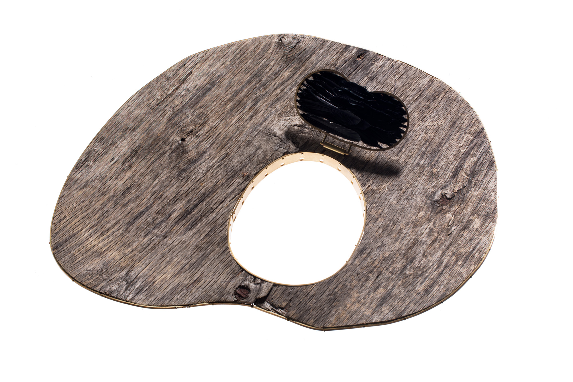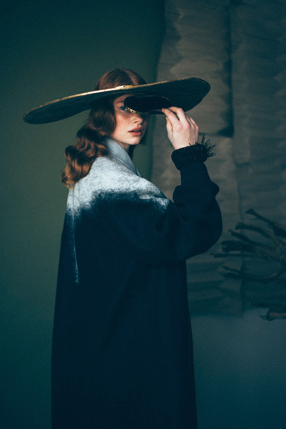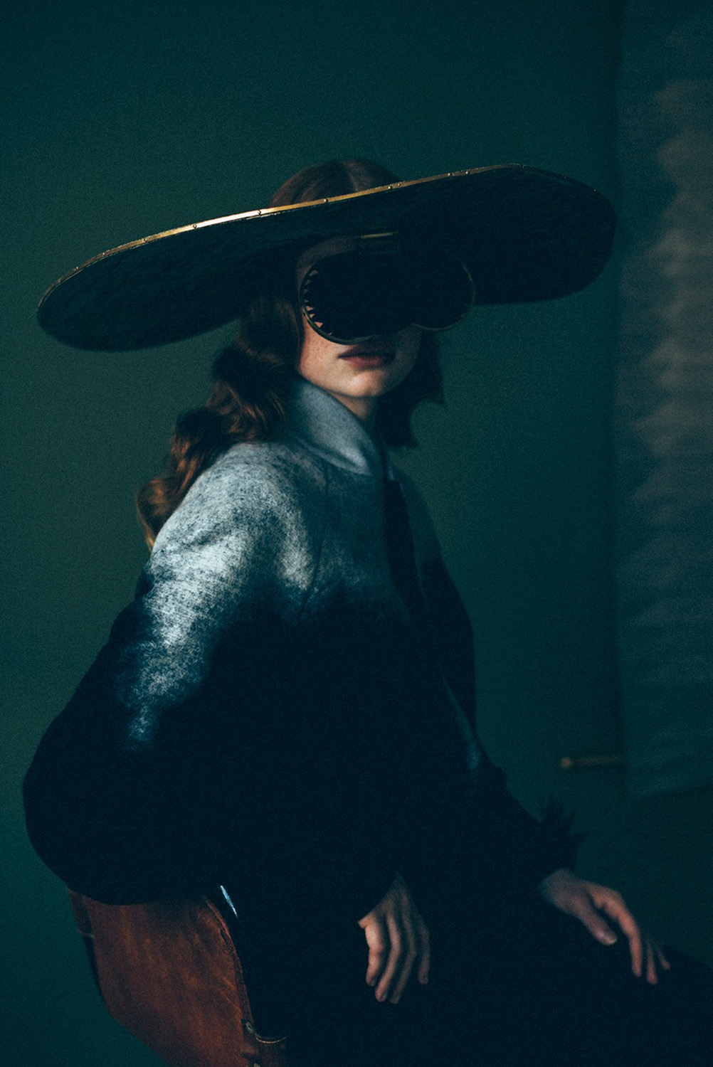 The Head-Rest-Nest is a nest for the head and the mind. It coensist of the big wooden brim, that protects from all kinds of weather and the flipping feathered sleep googles that block away the souraundings and create a dreamy space. The crown of the hat was initially made out of a bird nest, which disappeared at the end and stayed present only in spirit and name. The Head-Rest-Nest is a safe space to dream and fantasise about anything freely withought consequence or judgment.