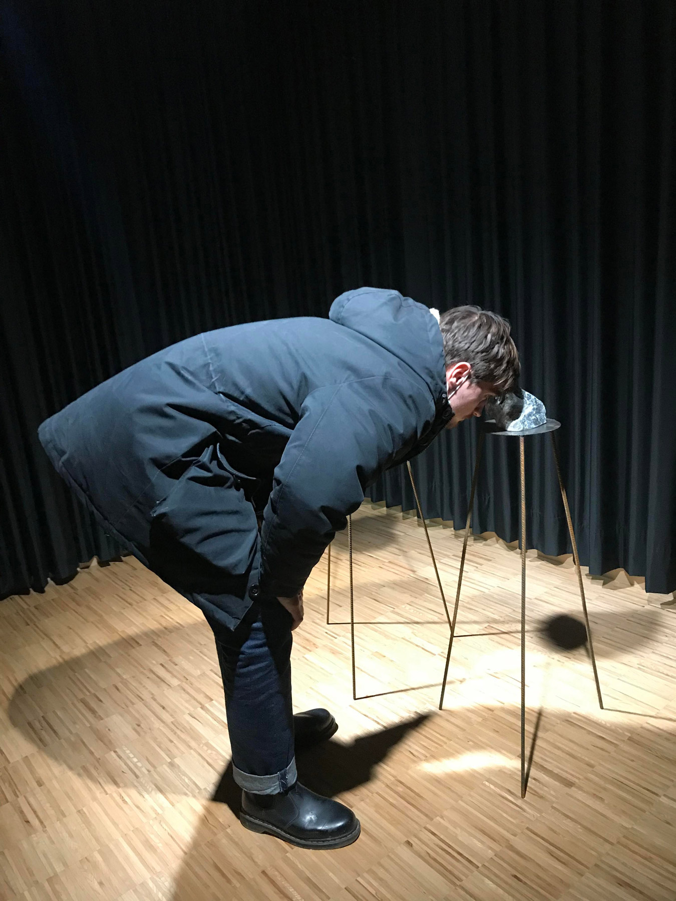 The Stone for Self-Reflection is generating an intimate space for self-reflection via reflecting the magnified eye back to the beholder. Inside the stone, there is a magnifying lens and behind it a mirror. The stone serves as a facilitator for the profound connection that is established with oneself by looking inside of it. The reflecting eye creates an eye-opening experience with oneself. The stone is a symbol of endurance, stability and being grounded. “Yet the common stone surrounds us everywhere and we give it little value”. * The raw stone is carrying as well the meaning of freedom and androgyny. It is this powerful, wise, grounding mundanity that I find fascinating and subsequently a perfect cradle for Self-Reflecting observances.